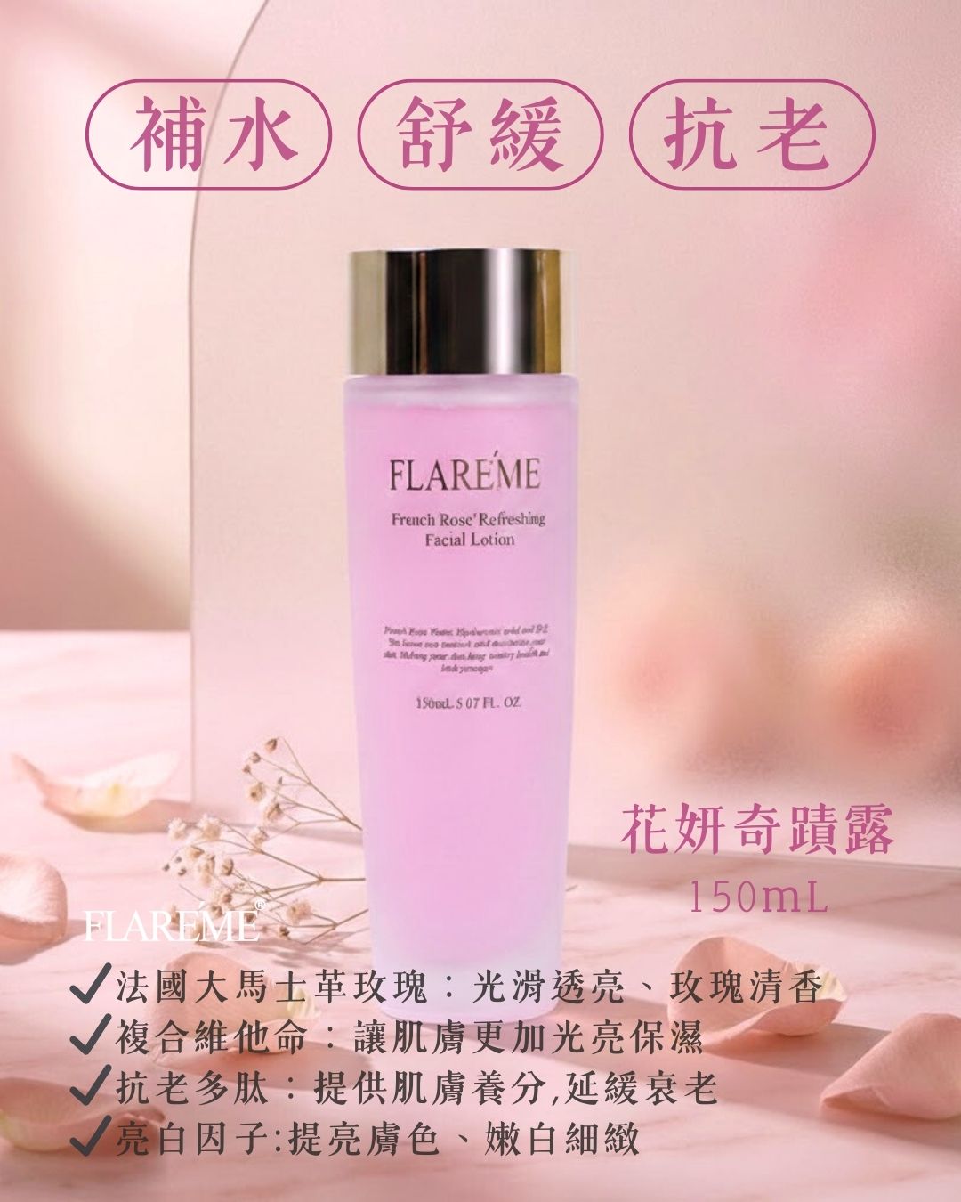◆ 全效平衡 | 花妍奇蹟露 150mL : 最強保濕純露,為肌膚開啟全方位調理,輕奢質地深度潤澤。