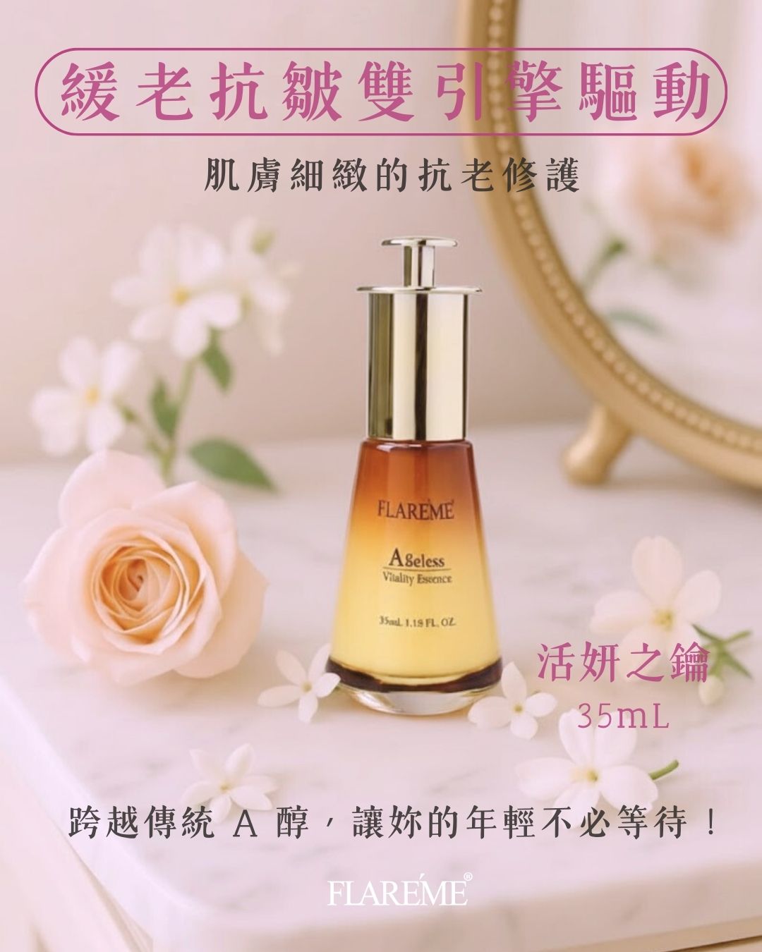 ◆ 機能修復 | 活妍之鑰 35mL : 獨家雙機轉抗老引擎,精準打擊初老倦態,機能修復,鎖住肌膚淨光。