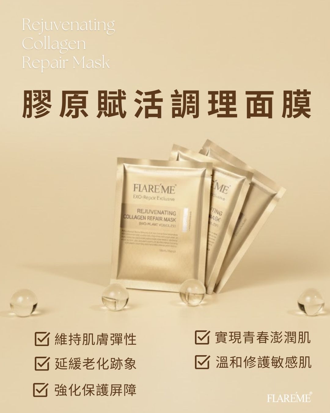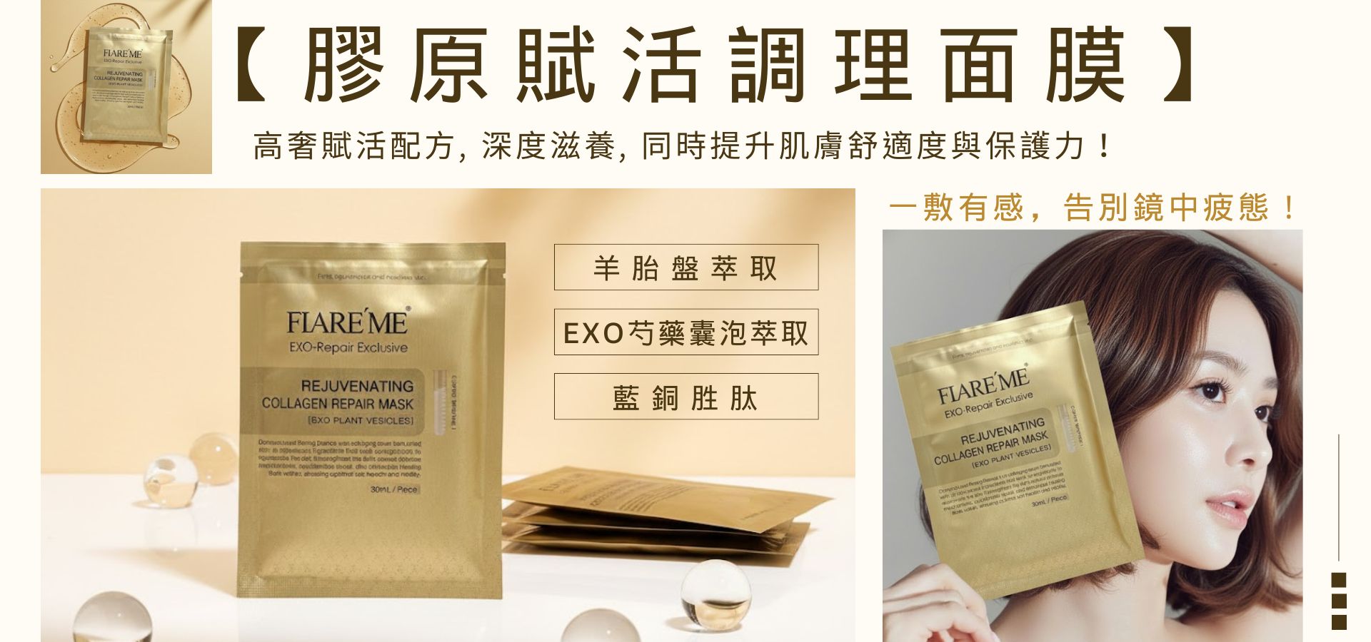 【FLARE'ME扉珞霓】膠原賦活調理面膜|30mL大容量精華液,舒緩X保濕X抗老 一次滿足 | 扉珞霓FLARE'ME
